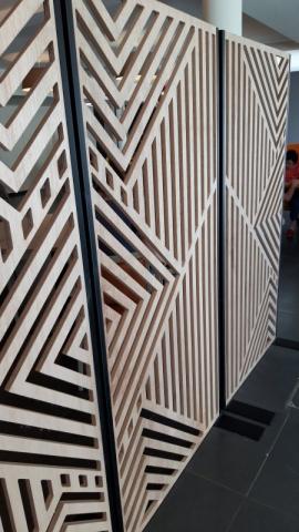 Nous avons gardé les lambris bois du hall, nous en avons placé également dans le restaurant pour unifier l'ensemble.