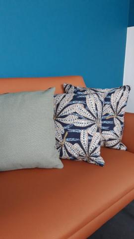 Nous avons également placé de jolis coussins pour finaliser le projet et donner un côté cosy à l'ensemble.